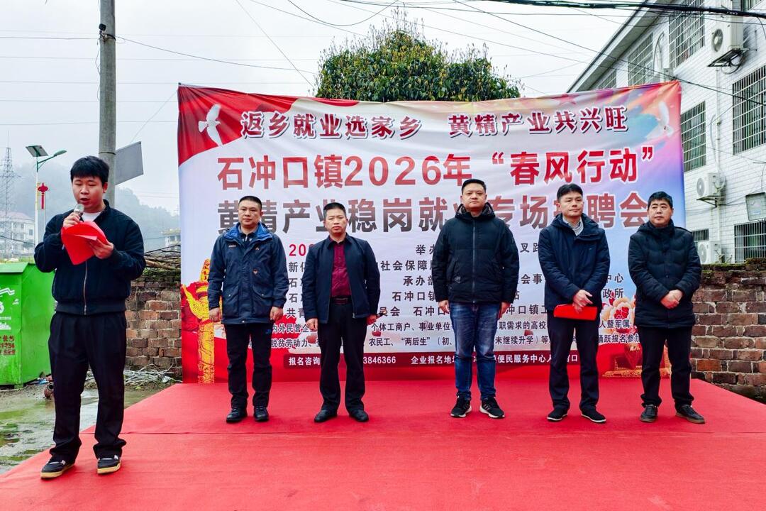 新湖南客户端3月17日讯(通讯员 谭志豪)3月16日,2026年新化县石冲口镇“春风行动”黄精产业稳岗促就业专场招聘会在石冲口镇中心广场举行。活动旨在贯彻落实上级稳就业保就业决策部署,以人才支撑黄精产业发展、助力乡村全面振兴。天龙山农林科技有限公司、新化县意健电子科技有限公司等多家特色产业企业携岗参会,为群众搭建家门口的就业对接平台。
