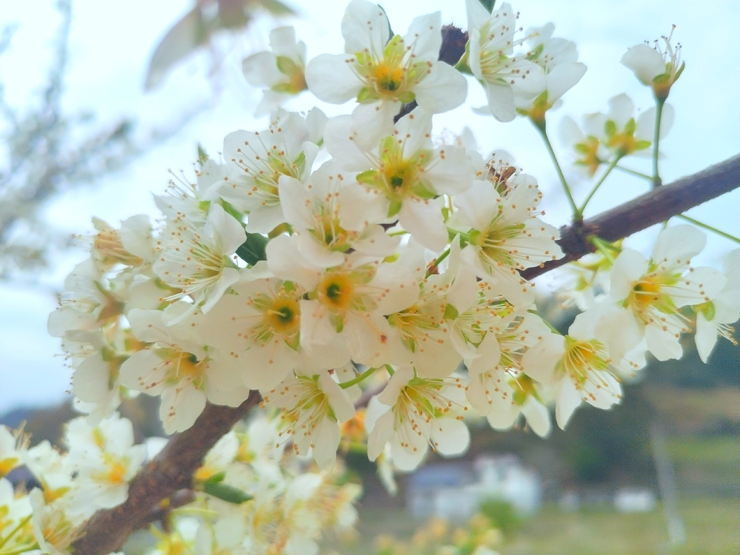 梨花团簇,“雪”压庭春。