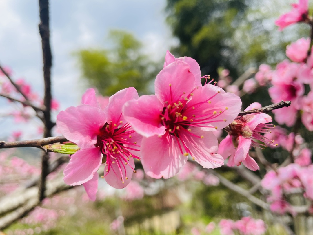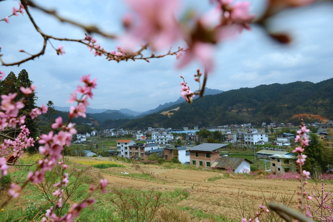 远山含翠,近树桃花。