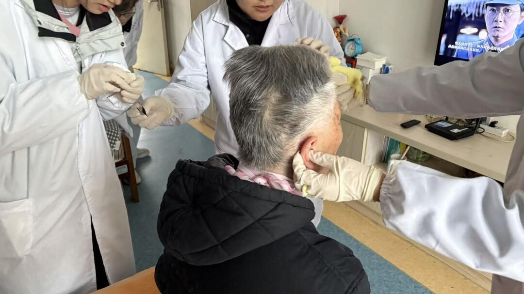 活动现场暖意融融,志愿者们分组行动,为老人们带来耳穴压豆、经络推拿等中医服务,陪老人们唠家常、话日常。针对老年人高发的颈肩劳损、失眠乏力等问题,志愿者们手法规范轻柔,施术缓解不适的同时讲解中医养生常识,以实操践行“大医精诚”的医者初心。