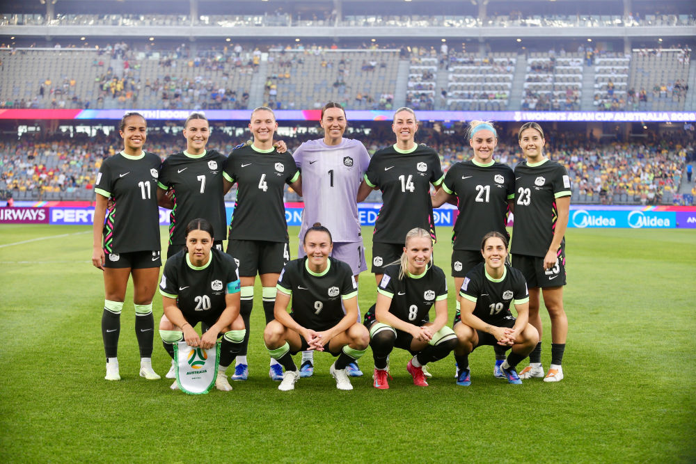 ↑ 澳大利亚队首发球员在比赛前合影。新华社发(周丹摄)