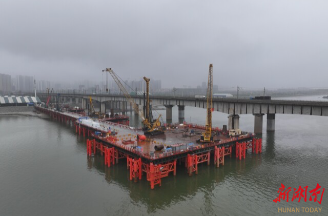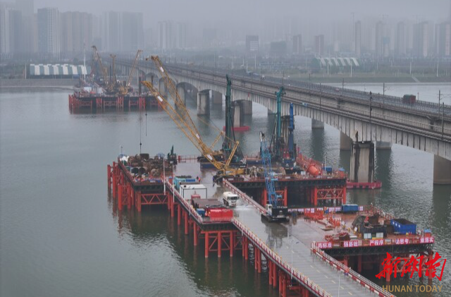 (长沙湘江铁路特大桥主桥首个主墩桩基完工。本文图片均为湖南日报全媒体记者 童迪 摄)