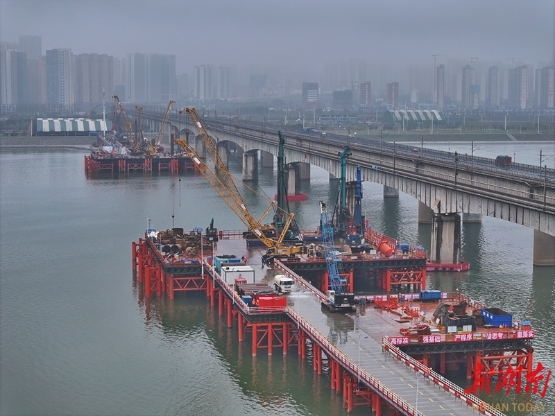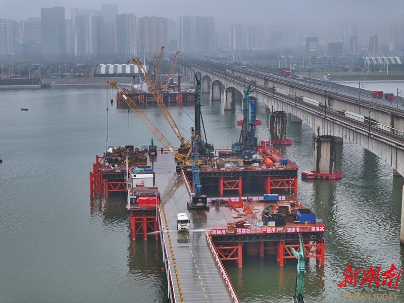 3月17日,长赣高铁湖南段关键控制性工程——长沙湘江铁路特大桥主桥137号主墩19根钻孔桩全部完工。湖南日报全媒体记者 童迪 通讯员 罗宏坤 摄影报道
