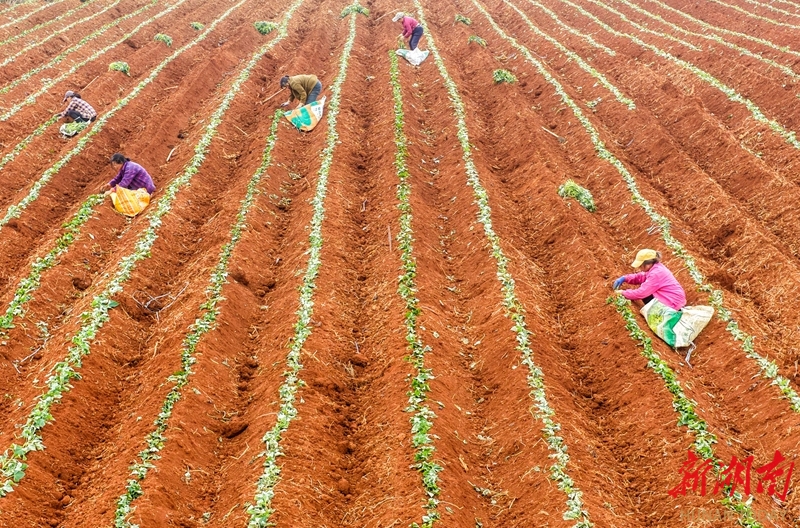 3月17日,道县祥霖铺镇秀水洞村,农民在栽种红薯苗。近年来,该县推广“合作社+基地+农户”种植模式,既扩大红薯产业规模,又带动当地农户实现家门口就业增收。蒋克青 摄(湖南图片库)