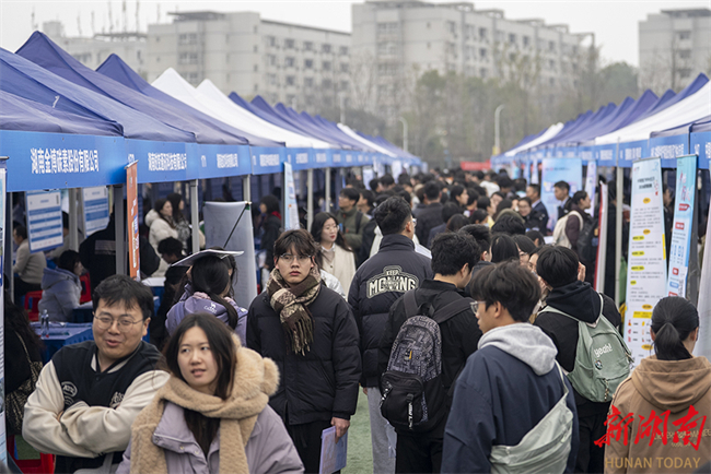On March 15, students checked job listings to learn about employment opportunities. The Central South University (CSU) hosted its first large-scale comprehensive job fair of the 2026 spring semester, which also served as a special recruitment event for the Hunan Provincial Permanent Job Market for College Graduates. The fair attracted 775 companies to attend, offering more than 36,000 job openings and providing graduates with a high-quality employment platform. (Photo/Tong Zhenxi, Hunan Daily)