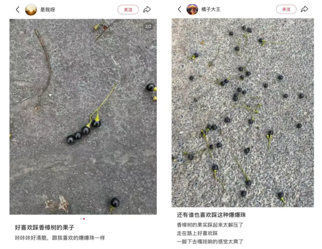 中国林科院林木遗传育种专业博士研究生导师、亚热带林业研究所从事林木种质资源研究的姜景民研究员表示,每年深秋后,樟树果实由绿色转棕黑色、紫黑色,之后陆续成熟脱落,尤其是春节前后到近期换叶季,樟树籽大量熟落,还伴随着大量落叶。