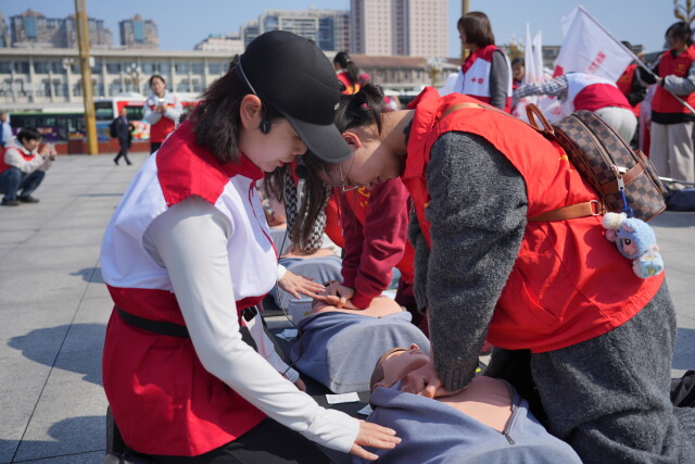 与此同时,应急救护实操教学同步开展。志愿者们现场示范心肺复苏、海姆立克急救法等关键技能,不少市民主动上前动手实操,在专业指导下认真练习,将救命技能牢牢记在心中、握在手中。