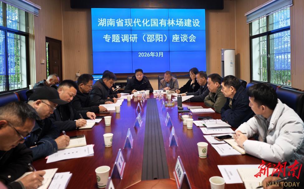 新湖南客户端3月18日讯(通讯员 肖小丁)3月18日,湖南省现代化国有林场建设专题调研(邵阳)座谈会在洞口县月溪国有林场召开。省国有林和种苗站、中南林业科技大学、邵阳市林业局及邵阳市13个代表林场相关负责人参加会议,围绕国有林场高质量发展核心议题,深入研讨交流,为全省现代化国有林场建设凝聚共识、谋划路径 。