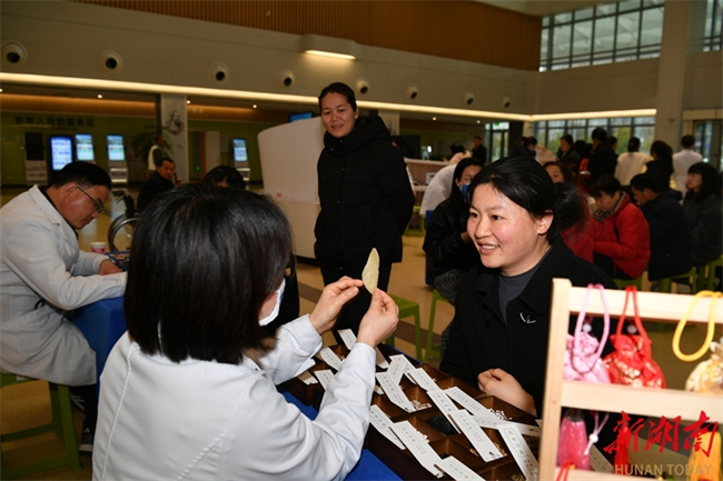 On March 17, traditional Chinese medicine experts provided free medical consultations for residents in the outpatient lobby of Changsha County People's Hospital (Hunan Provincial People's Hospital Xingsha Campus). That day marked the 97th Chinese Medicine Day. The hospital organized a cultural experience event on traditional Chinese medicine on the same day. The event featured a variety of cultural experiences on the site, including pulse diagnosis consultations, traditional Chinese medical therapies, health-promoting herbal teas, and health-enhancing exercises. It enabled residents to enjoy high-quality, free traditional Chinese medical services while also conveying the warmth and strength of traditional Chinese medicine. (Photo/Tian Chao, Hunan Daily)
