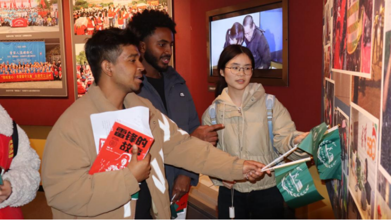 参观途中,留学生们不时驻足询问、认真记录,在一个个故事前畅谈对雷锋精神的理解与感悟。来自孟加拉国的留学生冉飞在看到雷锋“雨夜救水泥”的场景后动容地表示:“他用自己仅有的被子保护国家财产,这份无私的付出让我深受震撼。”尼日利亚留学生思翰在了解到雷锋“出差一千里,好事做了一火车”的故事后,笑着说:“我要把这个故事带回祖国,让更多人知道中国的雷锋,了解这种助人为乐的精神。”