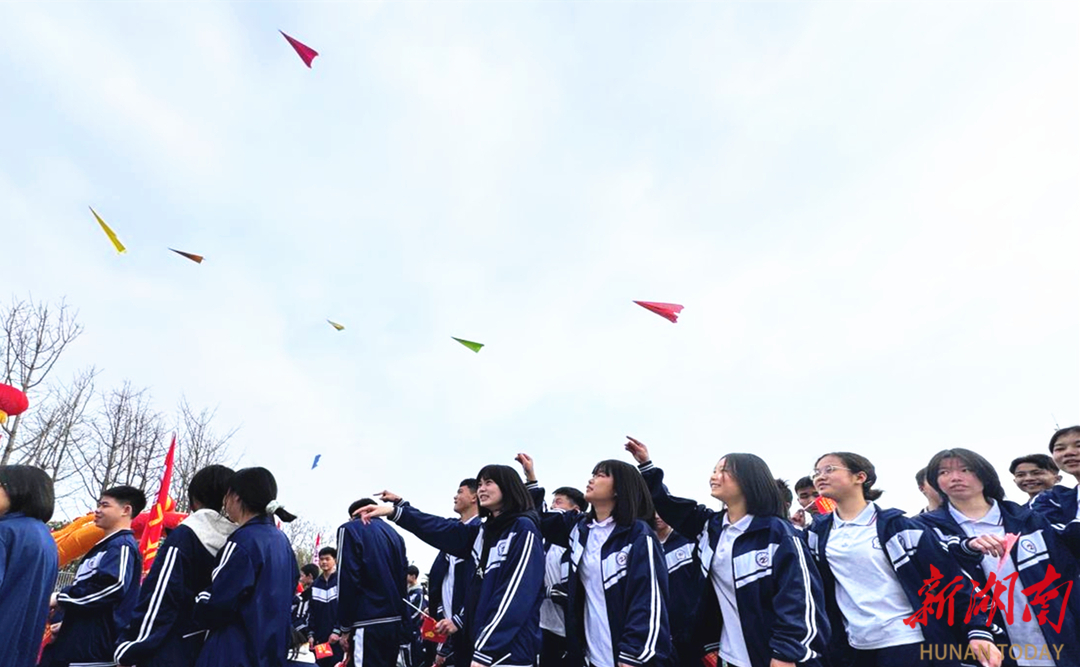 随着一声令下,八、九年级学生亲手放飞承载梦想的纸飞机。五彩斑斓的纸飞机在空中划出优美弧线,将青春的梦想与奋斗的期许一同送往远方。活动迎来最激动人心的时刻,学生们依次穿过“成功门”,与教师一一击掌。学生们在励志横幅上郑重签下自己的名字,一笔一划间写下的不仅是名字,更是对未来的承诺与期许。