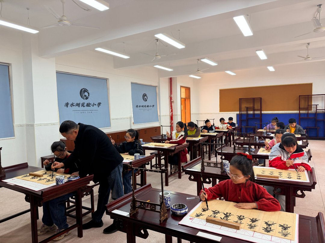 (图一 清水湖实验小学书法课堂)