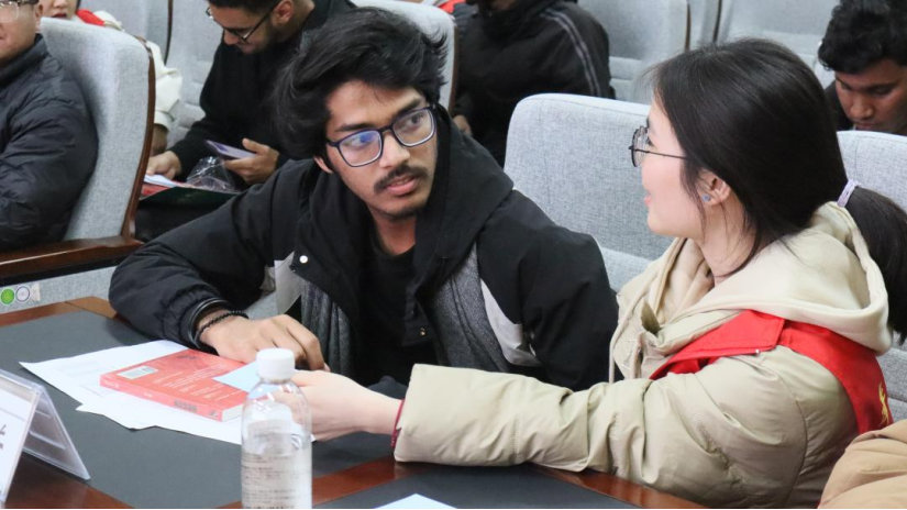 “Lei Feng’s spirit is to serve the people wholeheartedly and make selfless dedication for the people’s cause…”(雷锋精神的实质和核心是全心全意为人民服务,为了人民的事业无私奉献……)活动伊始,主持人刘鑫对雷锋精神的生动阐释,为来自孟加拉国、埃塞俄比亚、摩洛哥、尼日利亚等国的14名留学生打开了理解雷锋的大门。在分享环节,留学生们将雷锋事迹与自己的经历交织。来自孟加拉国的周苏然讲述了自己在中国感受到的师友善意,认为这与雷锋精神一脉相承;摩洛哥留学生乐成则被雷锋在列车上赠予手套的故事深深触动。