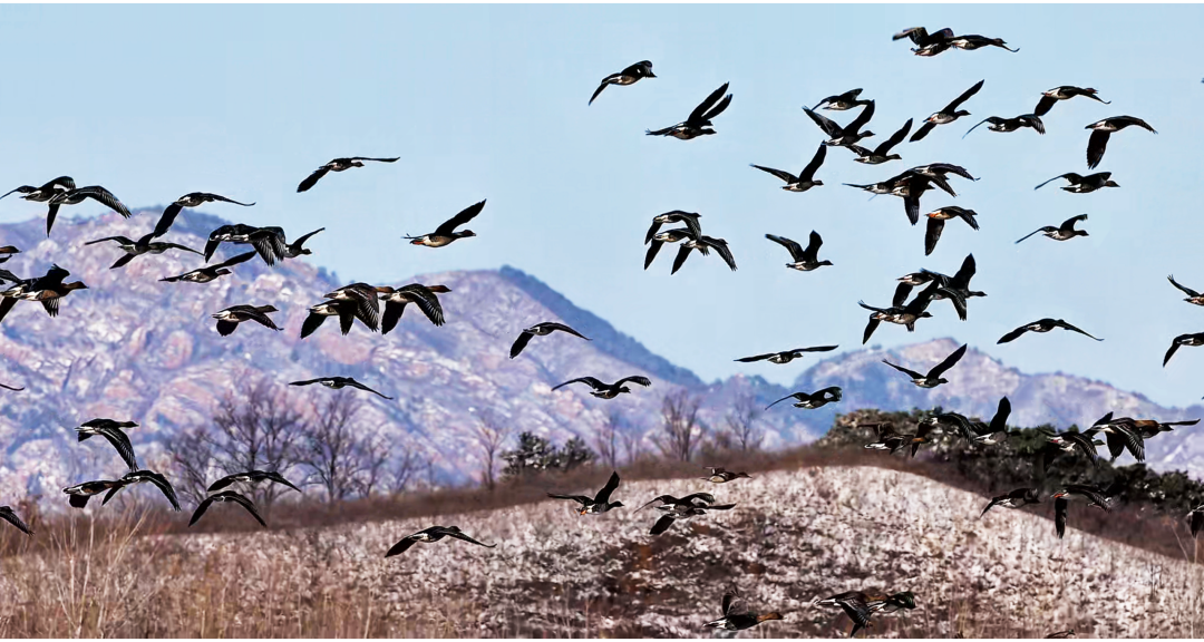 密云水库坐拥得天独厚的生态本底,水域辽阔、滩涂广袤、植被丰茂、食源充沛,是候鸟迁徙途中的“天然驿站”。近年来,密云水库水质稳定保持地表水Ⅱ类标准,森林覆盖率近90%,水生态健康指数位居全市前列,优良生态环境持续赋能生物多样性保护,国家一、二级重点保护野生动物频频现身库区,生态系统整体保持健康向好态势。