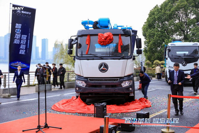 这款智混泵车为全球首台。三一重工相关负责人介绍,该泵车采用增程式混合动力技术,在跨湘、黔、渝三省的实测中,满油满电状态下行驶里程达1400.5公里,破解纯电动工程机械长期存在的续航焦虑问题。在不同施工强度下,该智混泵车运营成本可比传统设备降低30%至75%,在实测中创下连续84天不停机、累计泵送12万立方米的纪录。该车可上绿牌,不受城市限行限制。