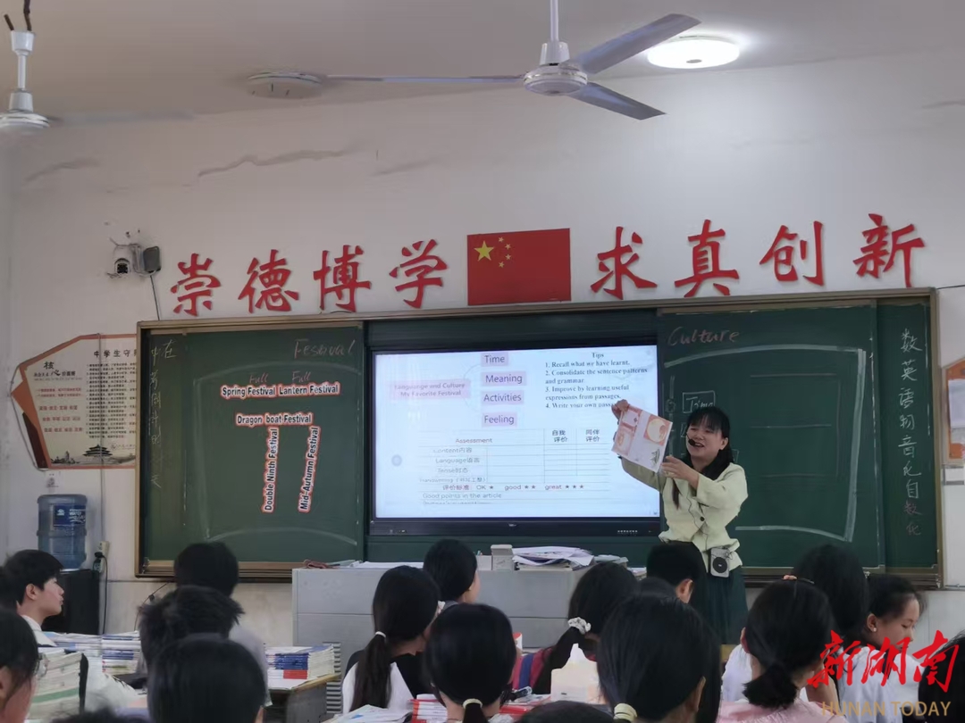 朱晓洁主持邵东市教育科学“十四五”规划课题《中华优秀传统文化融入初中英语教学的项目式学习研究》,创造性地将中国传统节日、传统技艺等文化基因植入英语课堂,开发出“双语古诗教学”“节日文化微剧场”等特色项目;作为《中考直通车》编写人员,她将人与自我、人与社会、人与自然构成新课标体系下英语学科的三大主题语境理念融入写作设计,相关成果获奖,实现知识传授与文化浸润的双向奔赴。