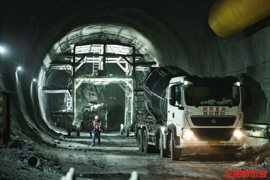 走进长浏快线蕉溪岭2号隧道施工现场,工程车辆往来穿梭,掘进设备轰鸣作业,建设者们正向着隧道深处稳步推进。作为全线最长的关键控制性工程,这座2260余米的隧道已顺利掘进500余米。