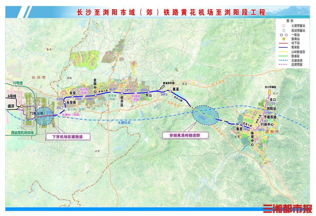 长浏快线采用一次性规划、分段施工模式,先期实施的黄花机场至集里段全长39.52公里,含高架线31.59公里、地下线2.70公里、山岭隧道4.99公里,将新建7座高架车站和1处车辆基地。项目计划2029年通车投用,建成后将与既有长沙磁浮快线贯通运营,无缝衔接长沙轨道交通线网,让长浏跨城出行更便捷高效。