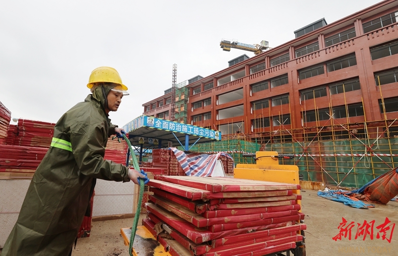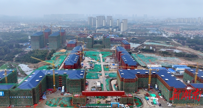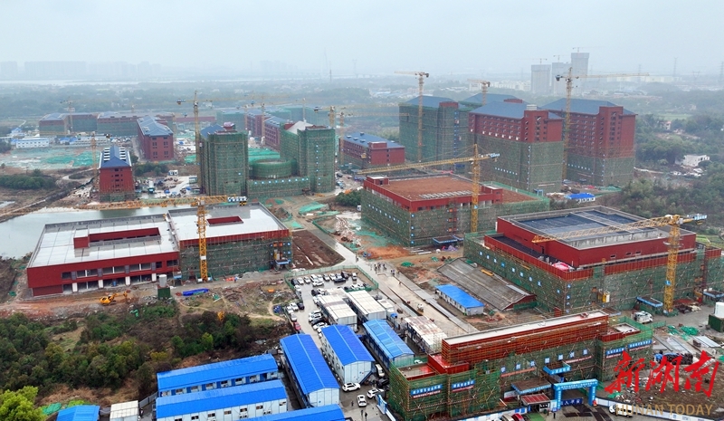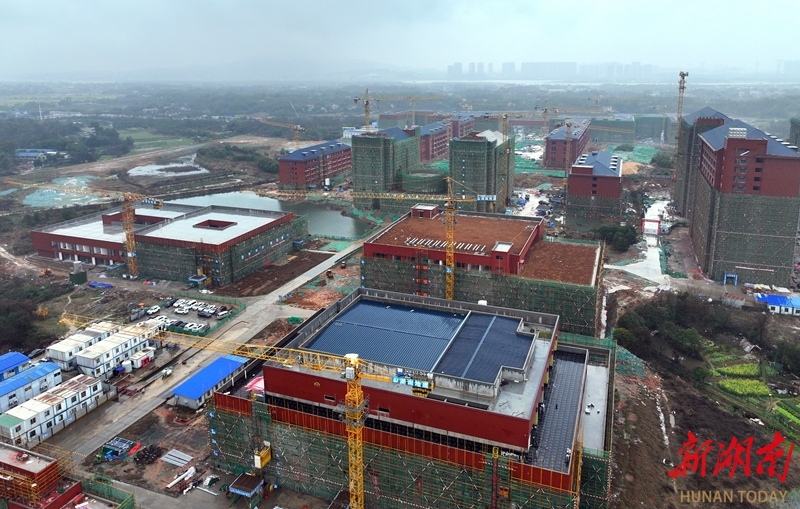 3月18日,长沙市望城区长沙医学院扩建项目(一期)施工现场,施工人员正在加紧施工。该项目总投资超20亿元,总建筑面积超50万平方米;其中,一期建筑面积26万余平方米,包含17栋主体建筑及多项体育配套设施,现已全部封顶验收,预计9月投入使用。二期工程预计2027年完工。湖南日报全媒体记者 赵持 通讯员 龚杰玲 王珺 摄影报道