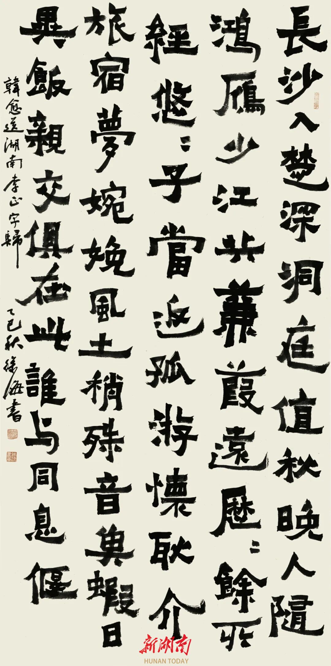 展览以精选了古今名人咏颂湖湘的诗文佳作,邀请来自全国书坛的100位楷书书法家,以中堂、条幅、斗方、扇面等形式,将经典诗文与楷书艺术融合,展现湖湘精神的文学厚度与艺术张力。