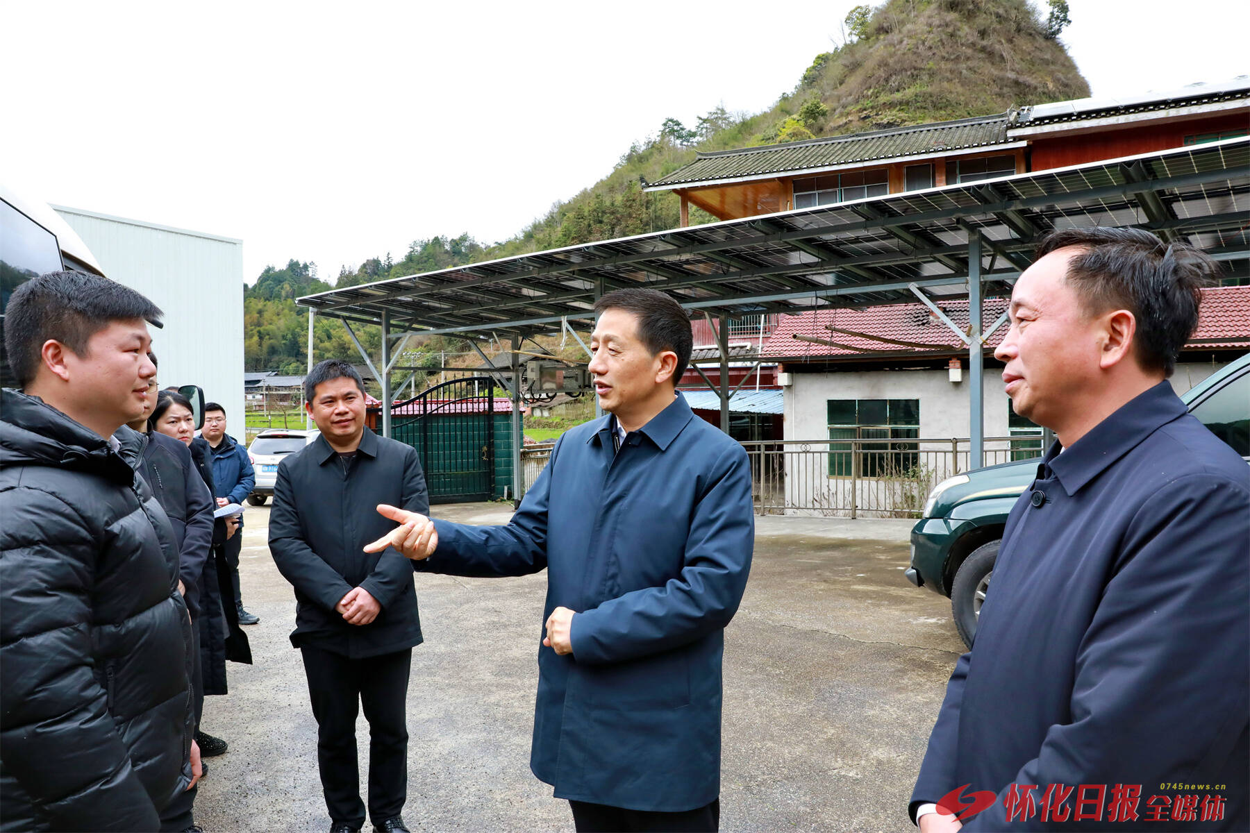 (3月18日下午,市委书记许忠建在通道和靖州乡镇调研。图为许忠建在通道溪口镇小水村甜藤粑粑加工及冷链仓储中心详细了解市场销售、联农带农等情况。)