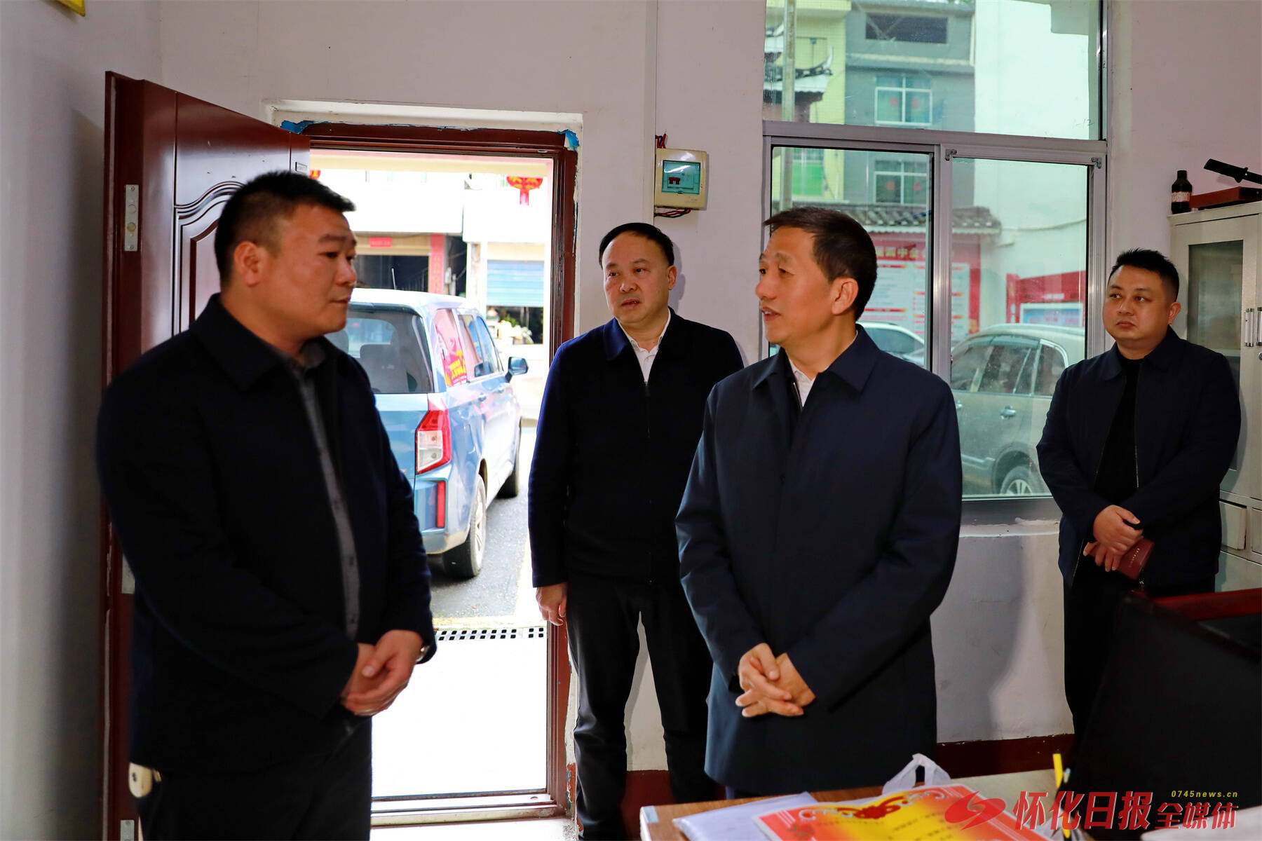 (许忠建在靖州大堡子镇检查学习教育、安全生产、值班值守等工作情况。以上照片均由怀化日报全媒体记者 彭军 摄)
