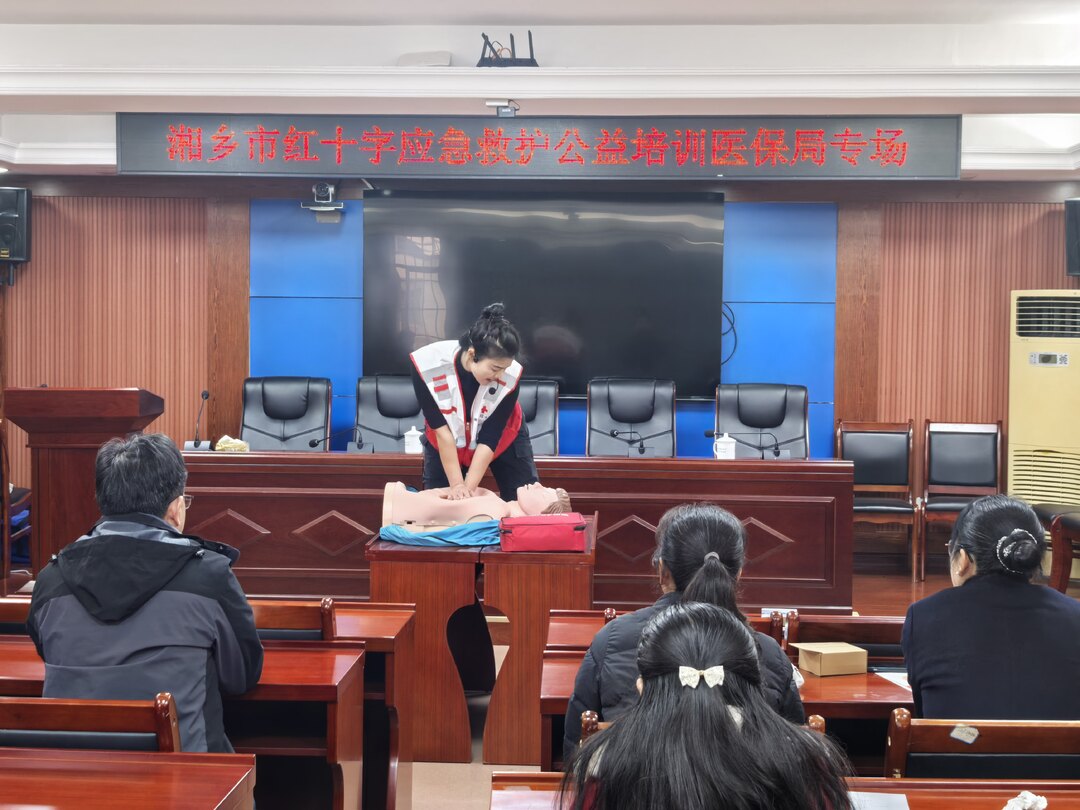 新湖南客户端3月19日讯(通讯员 王雪峰 章伟 董澄昊 梁艺涵)为进一步普及应急救护知识,提升公众自救互救能力,3月18日,一场别开生面的红十字应急救护公益培训在湘乡市医保局举行。本次活动特邀湘乡市红十字会负责人率专业急救培训师团队现场授课,市医保局全体工作人员参加培训。