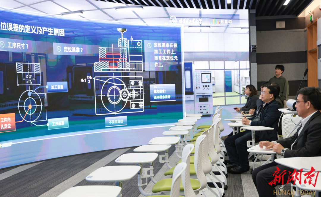 在湖北经济学院,调研组实地考察了数智创业实验室、“AI+数智财经”实验教学中心、沉浸式VR虚拟仿真实验室、三维立体虚拟仿真实验室和跨专业综合仿真实训中心等教学场地。湖北经济学院党委书记高义勇重点介绍了该校在“新财经”人才培养、实验教学改革等方面的探索与成效。该校着力打造“实验云”平台,构建“内容—平台—师资—管理”四维体系,跨专业综合实训课程覆盖全校31个经管类专业,相关成果获国家级教学成果二等奖;其创新教辅转教学机制、加强“三支队伍”建设及实施“特区政策”等举措,为应用型人才培养提供了地方高校方案。双方围绕实验教学管理、资源调配、产教融合育人等主题进行了深入探讨。