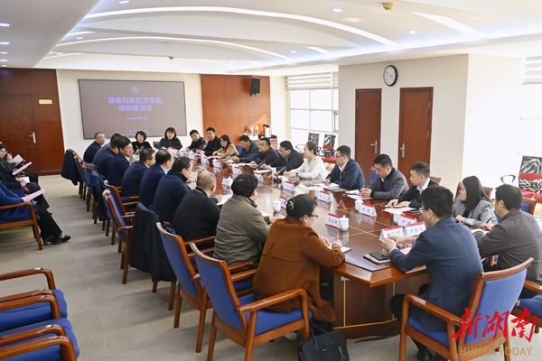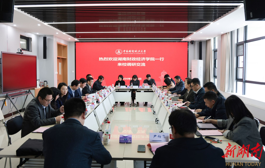 易棉阳、苏玲向两校领导介绍了学校办学历史、学科专业特色及近年来持续推进“三位一体”新财经人才培养模式改革的有关情况。他们表示,中南财经政法大学、湖北经济学院在学科交叉融合、实践教学改革、AI技术迭代传统课程等方面的探索经验,为学校提供了宝贵借鉴。希望以此次调研为契机,进一步加强校际交流,在师资互聘、课程共享、联合攻关重大课题等领域深化合作。学校将聚焦实验实训体系建设和应用型人才培养,以师生获得感、社会贡献度为标尺,着力搭建高水平实验教学平台,探索构建适配数字经济时代的实训体系,完善应用型人才培养机制,提升学生实践创新能力。立足学校发展实际,全力打造湖南省数字财经人才培养新高地,切实把调研成果转化为推动学校高质量发展的实际成效。