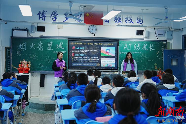 新湖南客户端3月19日讯(通讯员 皮嘉欣 朱子吟 彭思媛)3月18日下午,长沙理工大学设计艺术学院师生团队走进师大附中博才学士中学,为初二年级2420班开展了一堂别开生面的非遗数智化传承实验课。课程依托“家校论坛家长课堂”之社团科技节活动主题班会课展开,以“烟火亮星城·AI助成长”为主题,将高校设计艺术专业课程与人工智能多模态技术有机融合,带领中学生近距离感受传统文化与现代科技交汇的魅力。