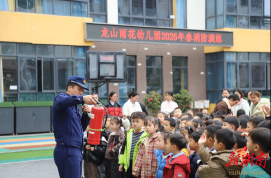 新湖南客户端3月19日讯(通讯员 杜小函 李杏 杨曼)今天上午,湘西土家族苗族自治州龙山雨花幼儿园开展“小小消防员,安全伴成长”消防演练暨安全教育活动,邀请龙山县消防救援大队进校园指导,全体师幼参与活动。