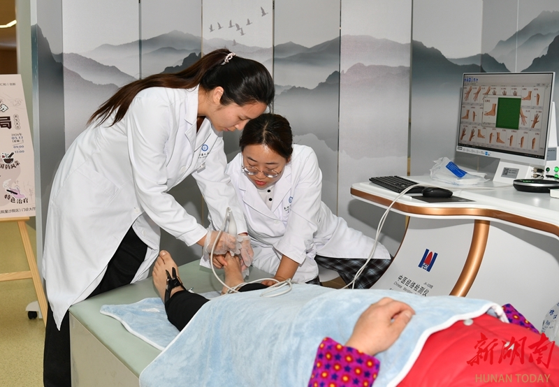 On March 17, a resident experienced traditional Chinese medicine techniques at Changsha County People's Hospital (Hunan Provincial People's Hospital Xingsha Campus). (Photo/Tian Chao, Hunan Daily)