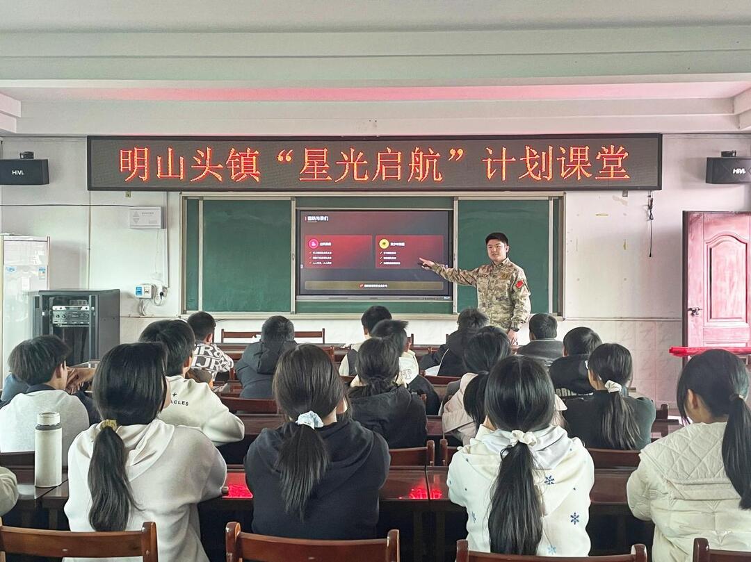 此次国防教育进校园活动,将红色基因传承与国防知识普及深度融合,有效增强了青少年的国防观念与爱国情怀,推动国防教育走深走实、入脑入心。下一步,明山头镇将持续依托“星光启航”计划,常态化开展国防教育进校园、进社区、进乡村等系列活动,让关心国防、热爱国防的种子在青少年心中深深扎根,为家乡发展和国家建设注入青春动能。