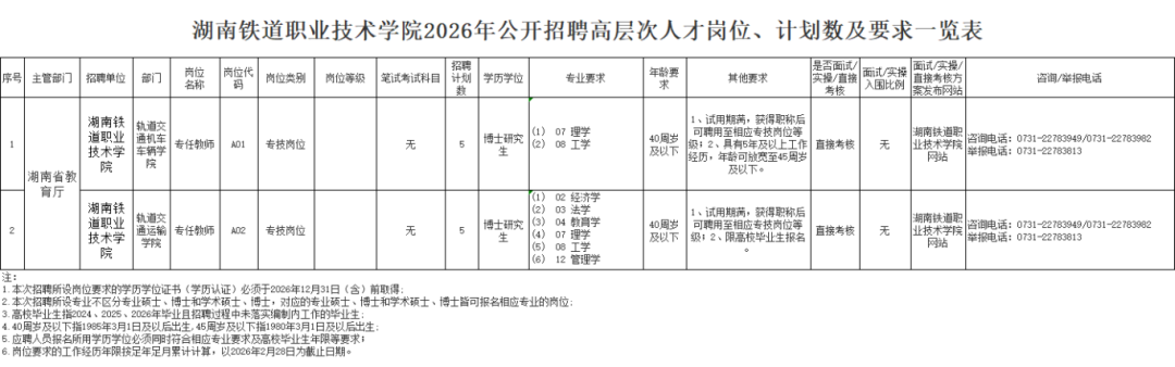 招聘信息通过湖南省人力资源和社会保障厅网、湖南铁道职业技术学院网站面向社会公开发布。