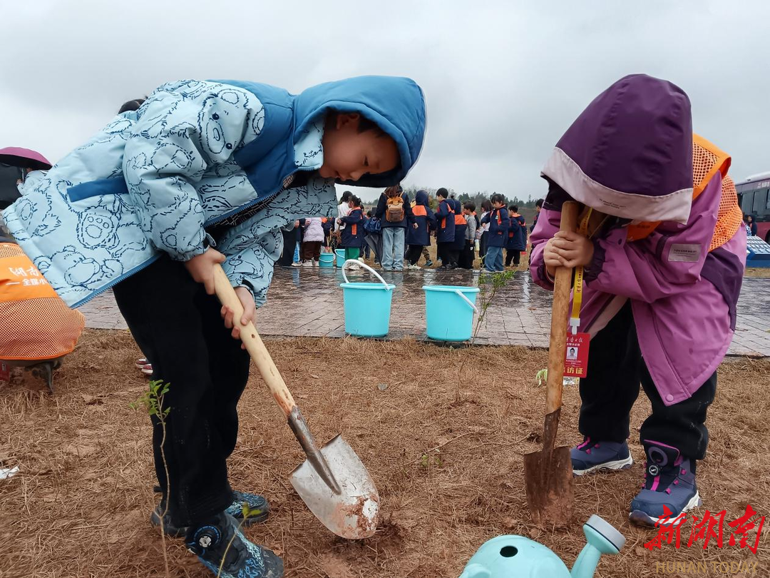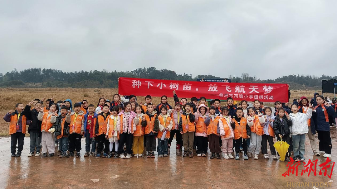湖南日报·新湖南客户端3月19日讯(通讯员 粟雅婷)3月19日,天气灰蒙蒙的,雨丝细密地斜织着,地上已经积起了一个个小水洼。“这样的天气,植树活动还办得成吗?”去往株洲芦淞机场斯凯航空无人机实飞基地的车程中,株洲市荷塘小学的孩子们你一言我一语地议论着着。车刚停稳,孩子们就迫不及待地探出脑袋往外瞧——铁铲、水桶整齐地摆放在地上。看来雨天植树,大家都准备好了。