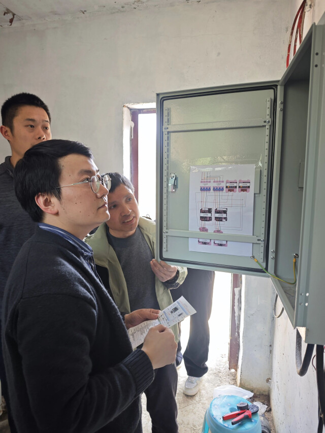 得知这一情况后,48所发挥央企社会责任担当,迅速组建专项帮扶小组。团队深入现场勘察,结合地形特点与用水需求,针对性设计并组装了智能水泵控制箱。技术人员翻越崎岖山路抵达现场,立即投入线路排查、设备安装、传感器调试及自动上水逻辑验证等工作,确保每一个环节精准无误。