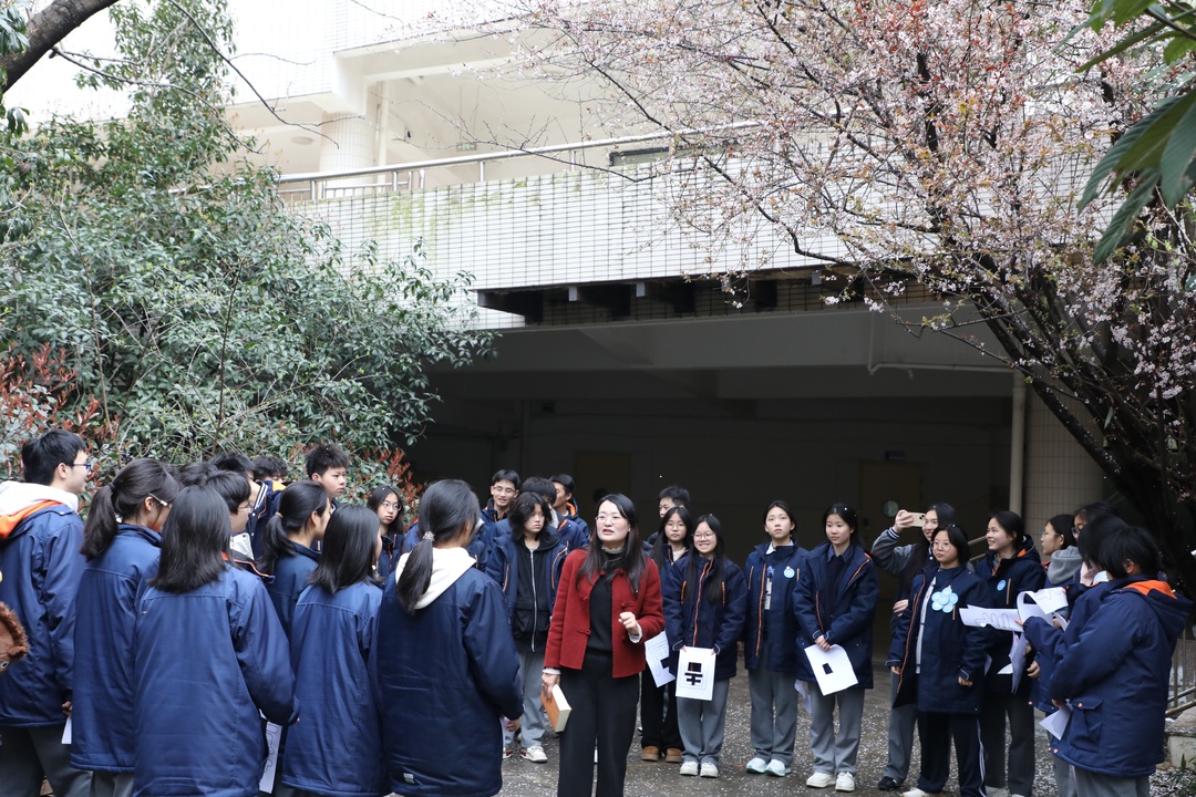学生们散开了。有人蹲在玉兰树下,数着花瓣的层数;有人站在柳树旁,看着嫩芽在风中颤动;有人掏出手机拍下桃花的特写,有人干脆拿出画本开始速写。