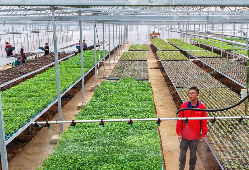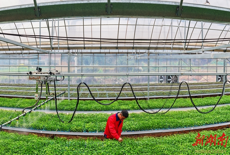 3月19日,嘉禾县珠泉镇湘溪村育苗基地,农技员在查看辣椒苗长势。近年来,该村大力发展现代农业,建设智能化育苗基地,依托智能管控系统与温室自动化技术,有效提高了蔬菜育苗的品质与效率,保障了当地种植户的用苗需求,有力促进了农业增效、农民增收。黄春涛 陈飞 摄影报道(湖南图片库)
