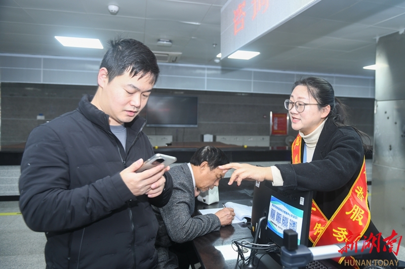 3月19日,娄底市政务服务中心,党员志愿者在引导市民办理业务。为持续优化营商环境,该中心聚焦“高效办成一件事”,设立“帮办代办服务台”,组建党员志愿者专班,为企业和群众提供咨询、网上申办、全流程跟踪等服务,让政务服务更暖心舒心。吴永华 摄(湖南图片库)