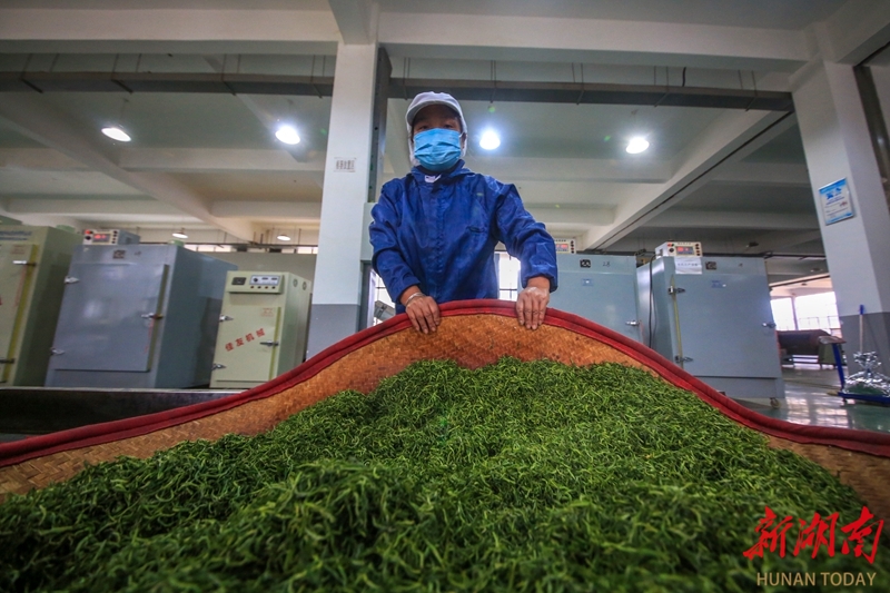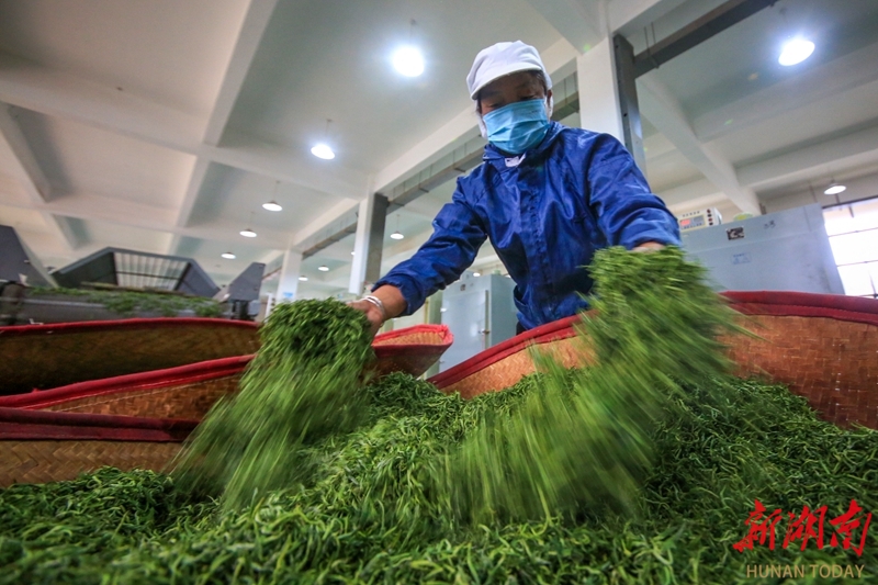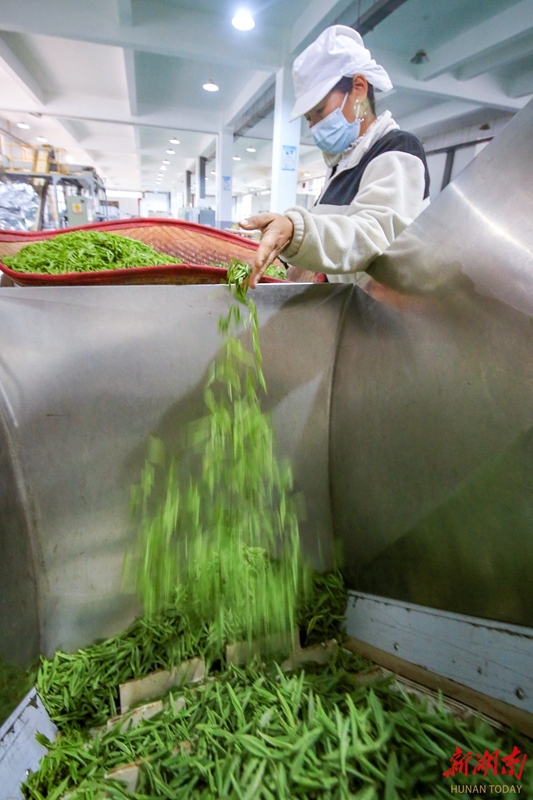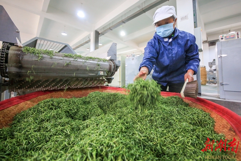 3月19日,龙山县红岩溪镇肖家坪村,工人在加工制作春茶。眼下正值当地春茶采摘季,茶农们抢抓时节进行采摘、加工,及时供应市场。曾祥辉 摄(湖南图片库)