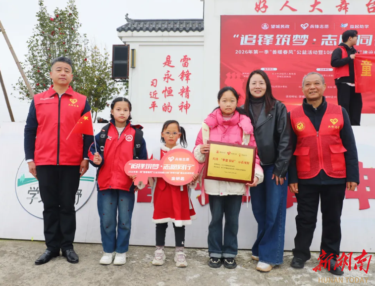 以讲促行、以行践诺。老兵宣讲团还联合望城区退役军人兵锋志愿服务队,开展 “梦想书屋” 建设,为书屋授牌并向 16 名困难儿童发放助学金和学习用品。受助学生深受感动,主动加入志愿服务队伍,从受助者转变为助人者,用实际行动践行雷锋精神。