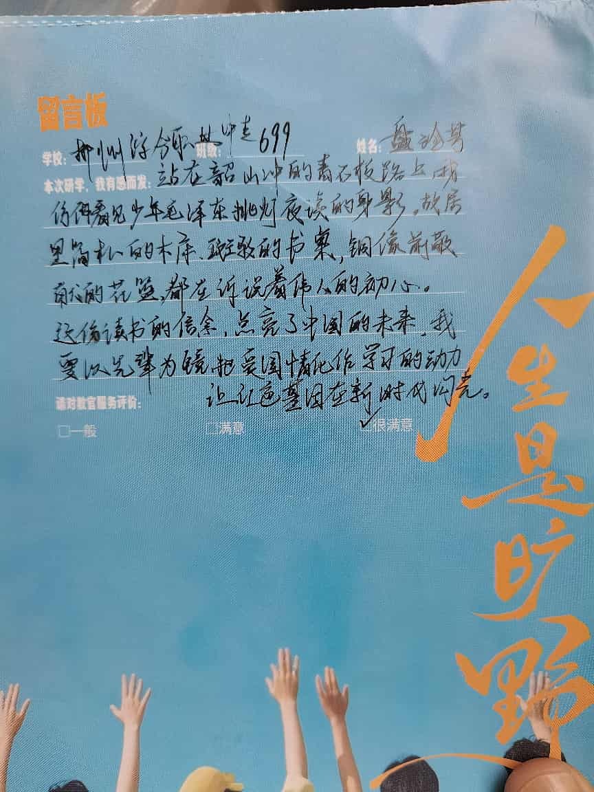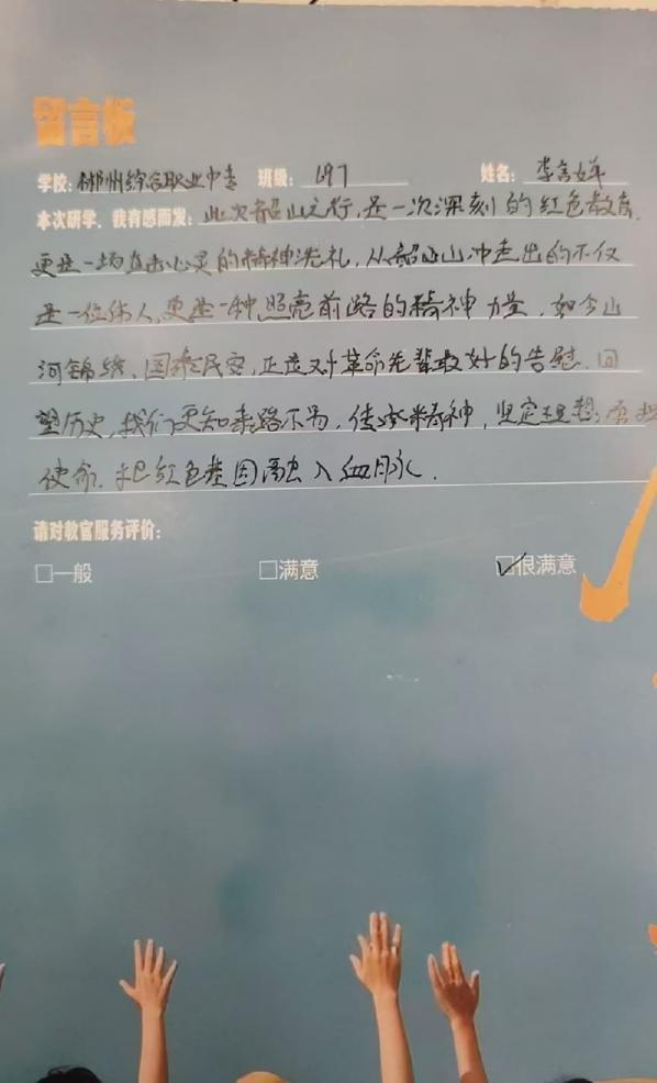 一次韶山行,一生红色情。此次研学,郴州综合职业中专学校学子在伟人故里寻根铸魂、汲取力量,感悟革命精神,厚植爱国情怀,坚定理想信念。未来,同学们必将牢记“请党放心,强国有我”的誓言,以青春之我、奋斗之我,勤学笃行、精益求精,让红色基因代代相传,让青春在强国征程中绽放光彩。(彭婧雯 陈哲立)