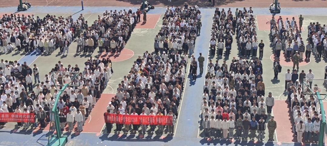 春雨绵绵,松柏苍翠。在毛泽东广场,全体师生神情肃穆,面向伟人铜像齐声高唱《没有共产党就没有新中国》。激昂歌声落下,同学们高举右拳庄严宣誓:“青年怀壮志,立功正当时,请党放心,强国有我!”铿锵誓言回荡广场,尽显新时代职教学子的责任与担当。