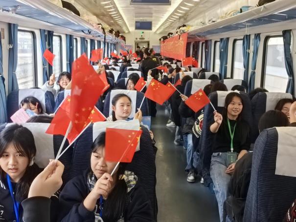 次日,同学们怀着崇敬之心走进烈士陵园,在青松翠柏间静默肃立,向革命先烈致以深切缅怀。随后,大家走进韶山火车站,聆听“普速列车到高铁”的发展历程讲解,直观感受“中国速度”与时代巨变,进一步增强民族自豪感。