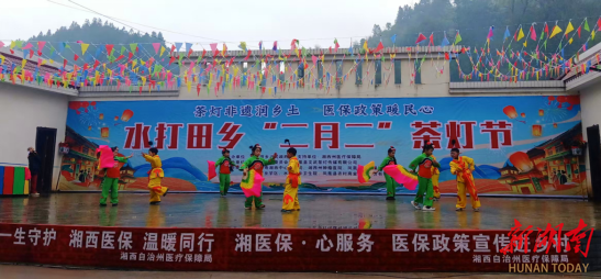 新湖南客户端3月20日讯(通讯员 符林涛)3月20日,农历二月初二,一场以“茶灯非遗润乡土·医保政策暖民心”为主题的“二月二”文武茶灯节暨医保政策进乡村活动,在湘西土家族苗族自治州凤凰县水打田乡水田村举行,为当地群众带来一场集文化盛宴、政策咨询、健康服务于一体的综合性活动。