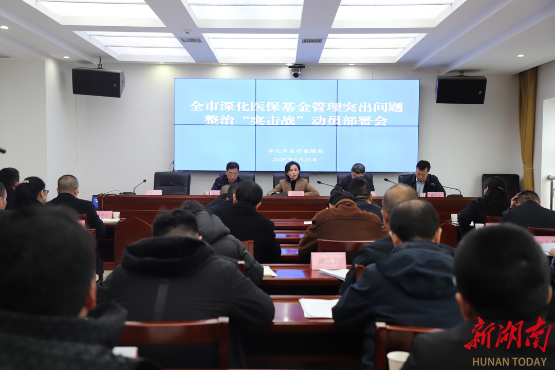 湖南日报·新湖南客户端3月20日讯(通讯员 张冰 马向萍)3月20日,怀化市深化医保基金管理突出问题整治“突击战”动员部署会召开。此次会议主旨在全面落实全省深化医保基金管理突出问题整治“突击战”动员部署会要求,总结去年专项整治成效,动员部署今年全市深化医保基金管理突出问题整治“突击战”,推动整治工作向纵深发展、向长效治理迈进。