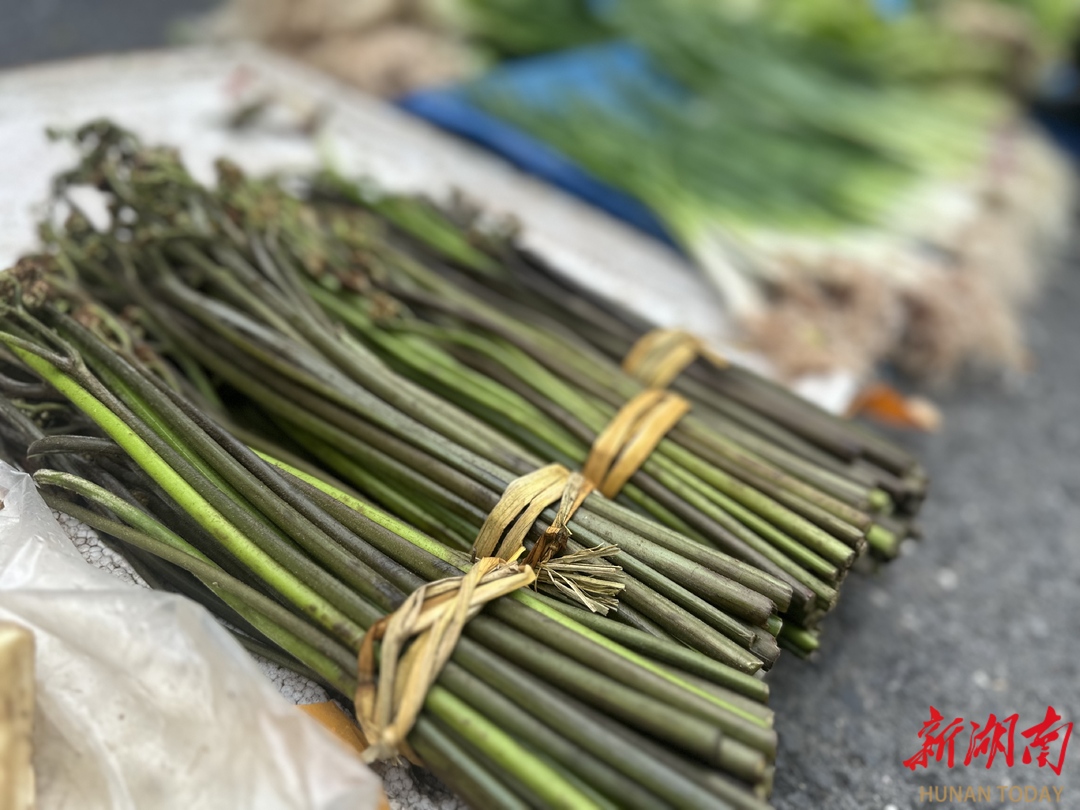 湖南日报·新湖南客户端3月20日讯(全媒体记者 李菁菁)3月19日晚7时,湘西土家族苗族自治州吉首市八月楼菜市场人声鼎沸,周边的农户拉着新鲜的春菜等候买家。摊位上,野胡葱翠绿欲滴、鱼腥草鲜嫩水灵、蕨菜亭亭玉立,空气中弥漫着春日特有的清香。
