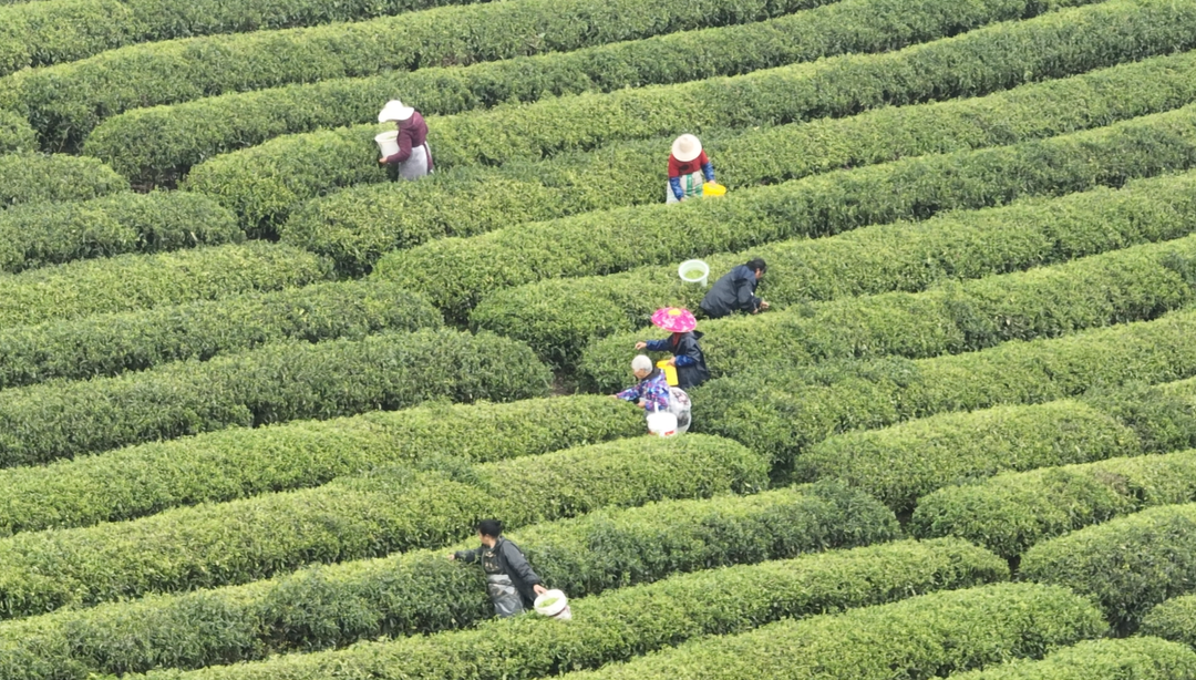 高桥镇茶园内,春茶采摘忙碌。高桥镇供图