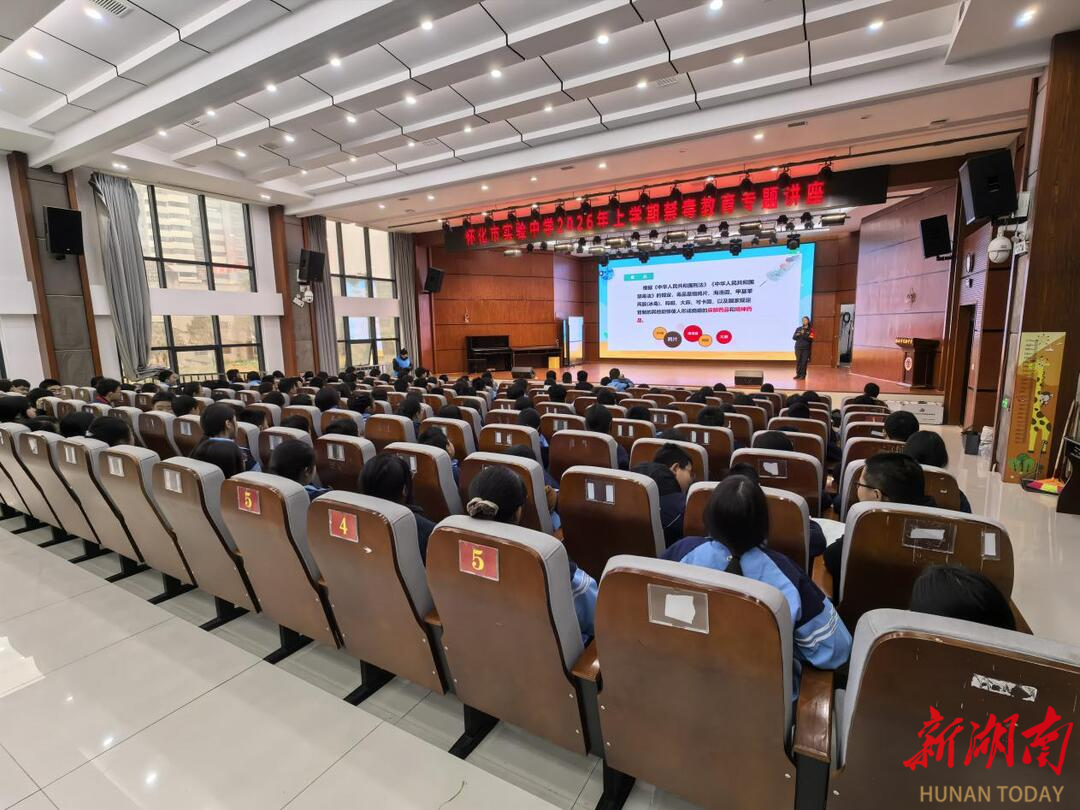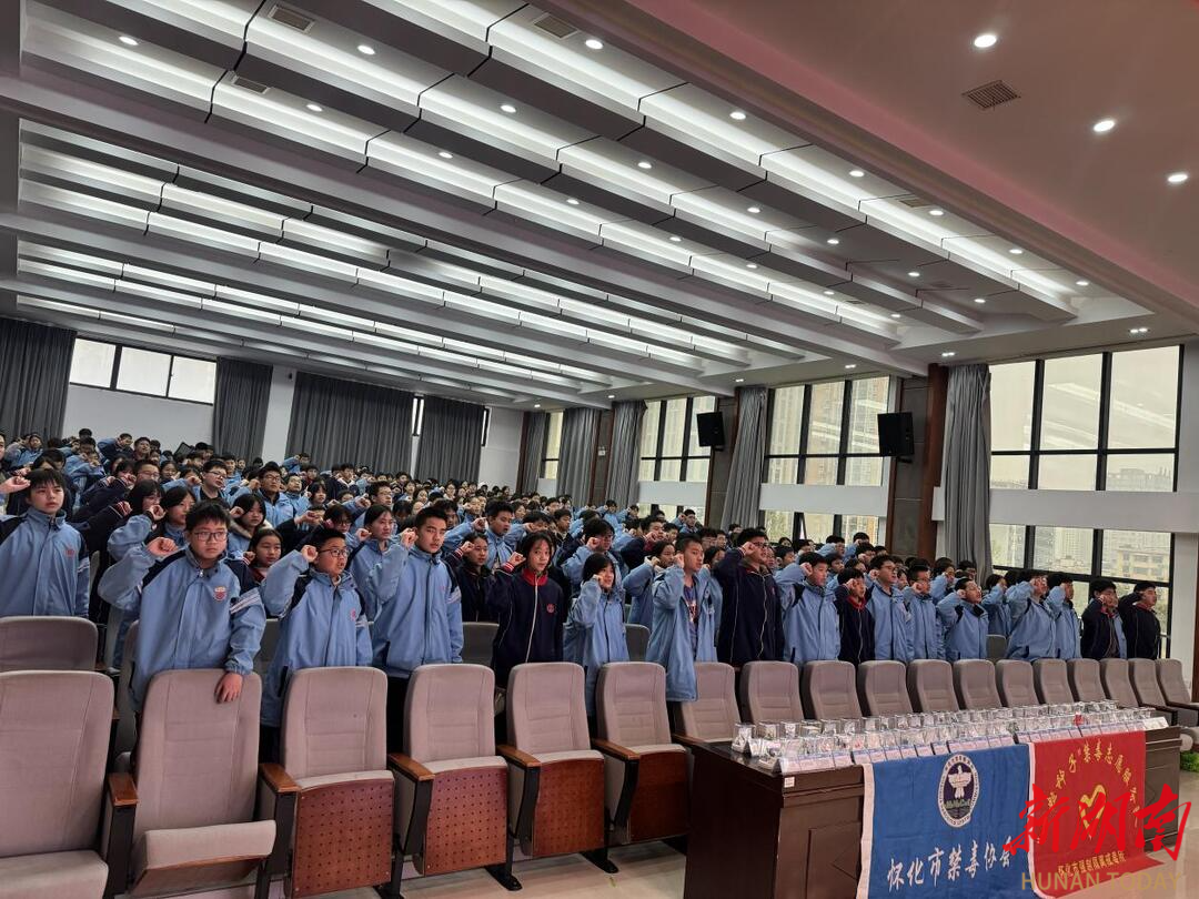 新湖南客户端3月20日讯(通讯员 陈尽致)为进一步筑牢校园禁毒安全屏障,增强青少年识毒、防毒、拒毒意识和能力,护航学生健康成长,3月20日,由怀化市禁毒专项组、怀化市强制隔离戒毒所、怀化市禁毒协会联合举办的禁毒“开学第一课”主题宣讲活动,在怀化市实验中学顺利开展。全校师生齐聚一堂,共同聆听禁毒科普,筑牢青春防毒长城。