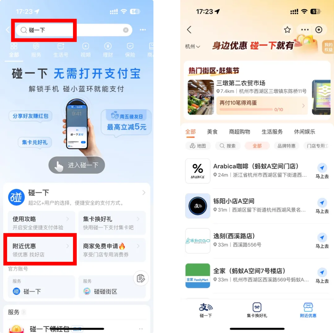 “以前付款要找付款码,现在手机碰一下就完成,还能自动减钱,太方便了!”,线下购物的黄女士表示;参加“碰友节”的商户也覆盖了众多场景,菜场、超市、便利店、水果茶饮店等等,市民在支付宝搜“碰一下”,即可查看附近支持使用的门店信息。